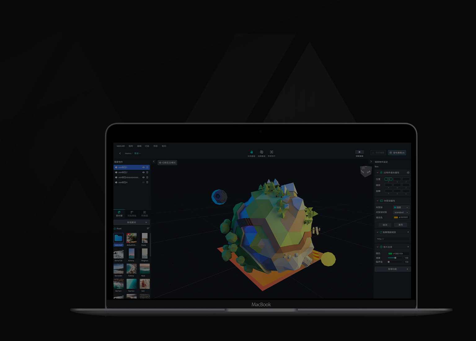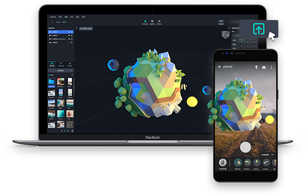 透過 <MAKAR XR 編輯器> 製作完成的 AR/VR/MR/360VR 內容,能即時瀏覽體驗