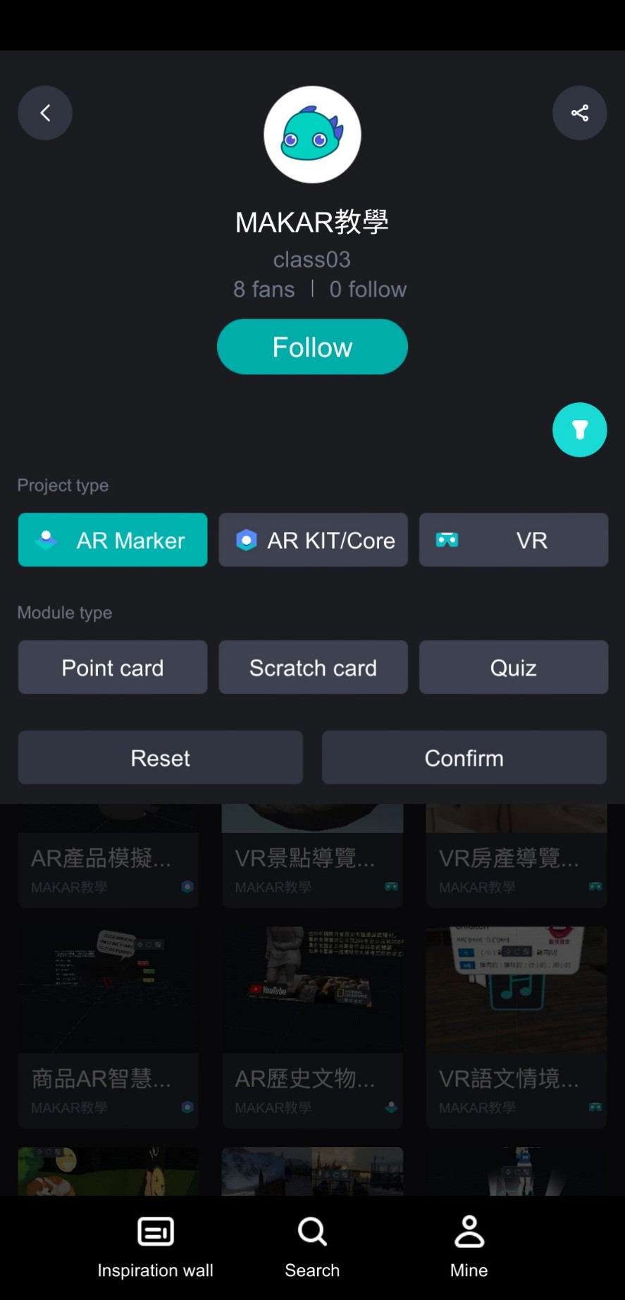 Open App: Makar on your mobile, input ID:Class03,remember to select AR Marker. Press start to scan, and you’ll see the result.