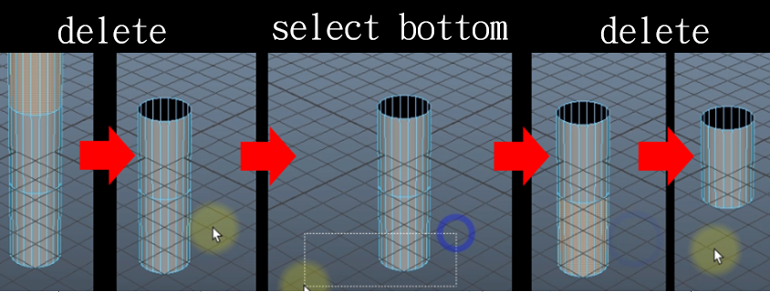 Use the same way to delete the bottom of the cylinder, leave the center part