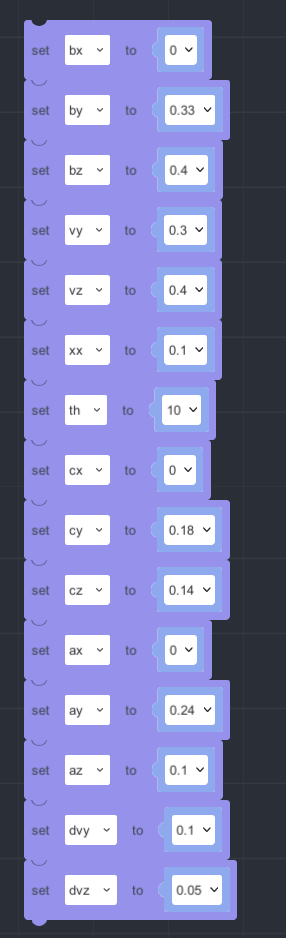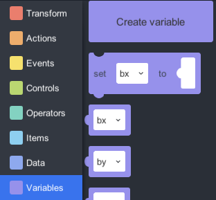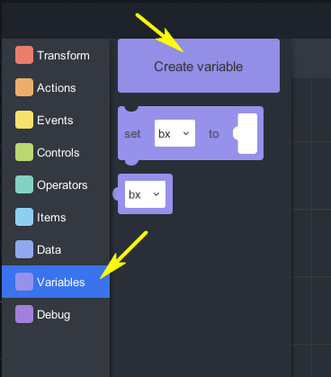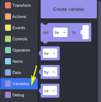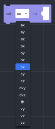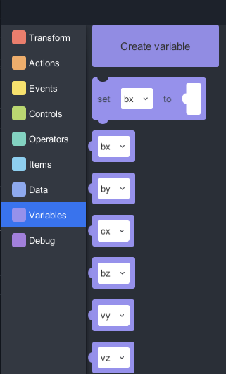 1. Drag the blockly of variables, and drop it to  create a variable. Arrange every value according to this sheet.