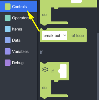 1. There are different blocklies on the left. Please drag one blockly into the blank space to start.