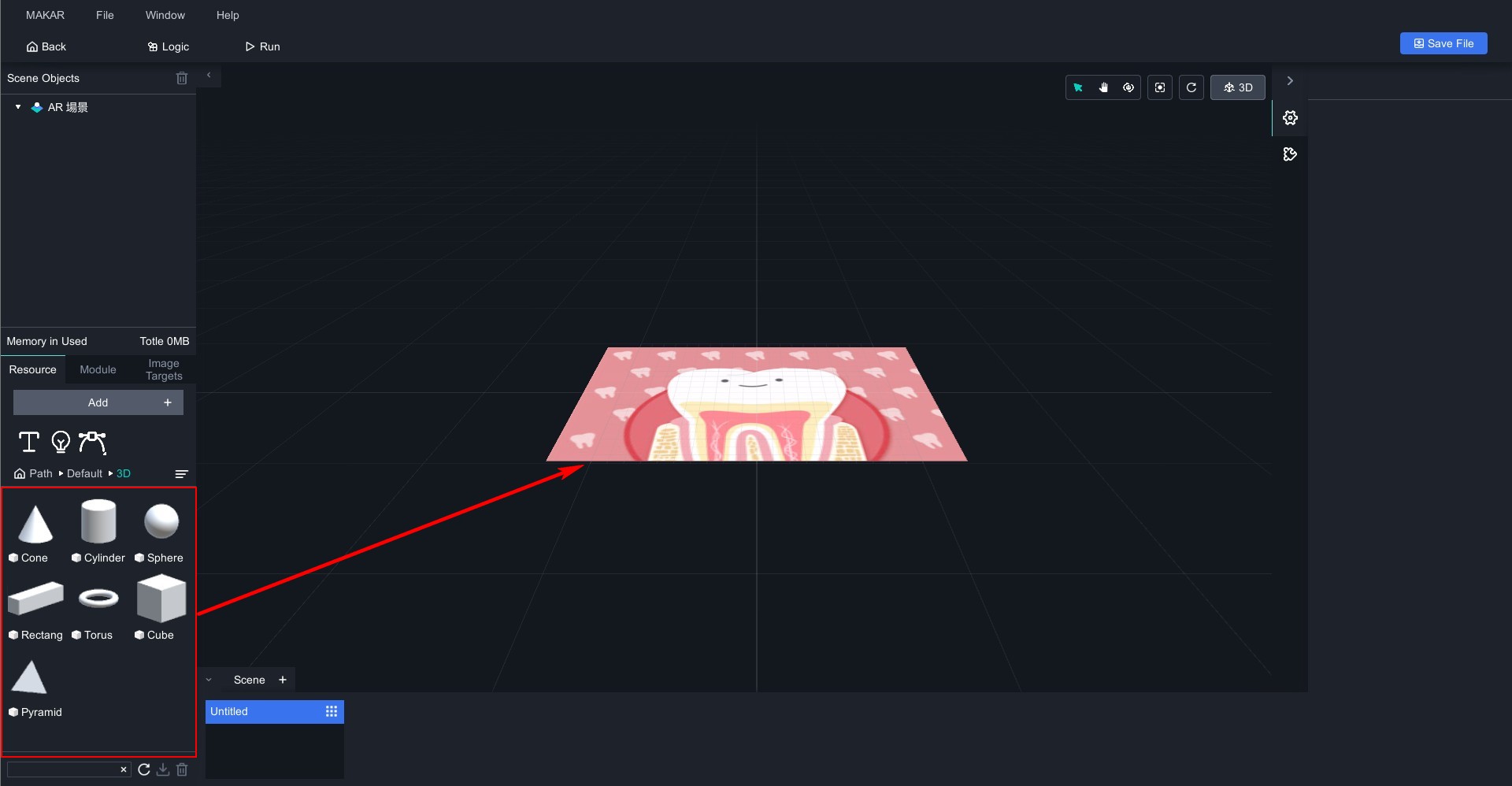 4. Successfully enter the Augmented Reality (Image) project, drag objects to the scene above the image target, and adjust the appearance of the image target you envision.