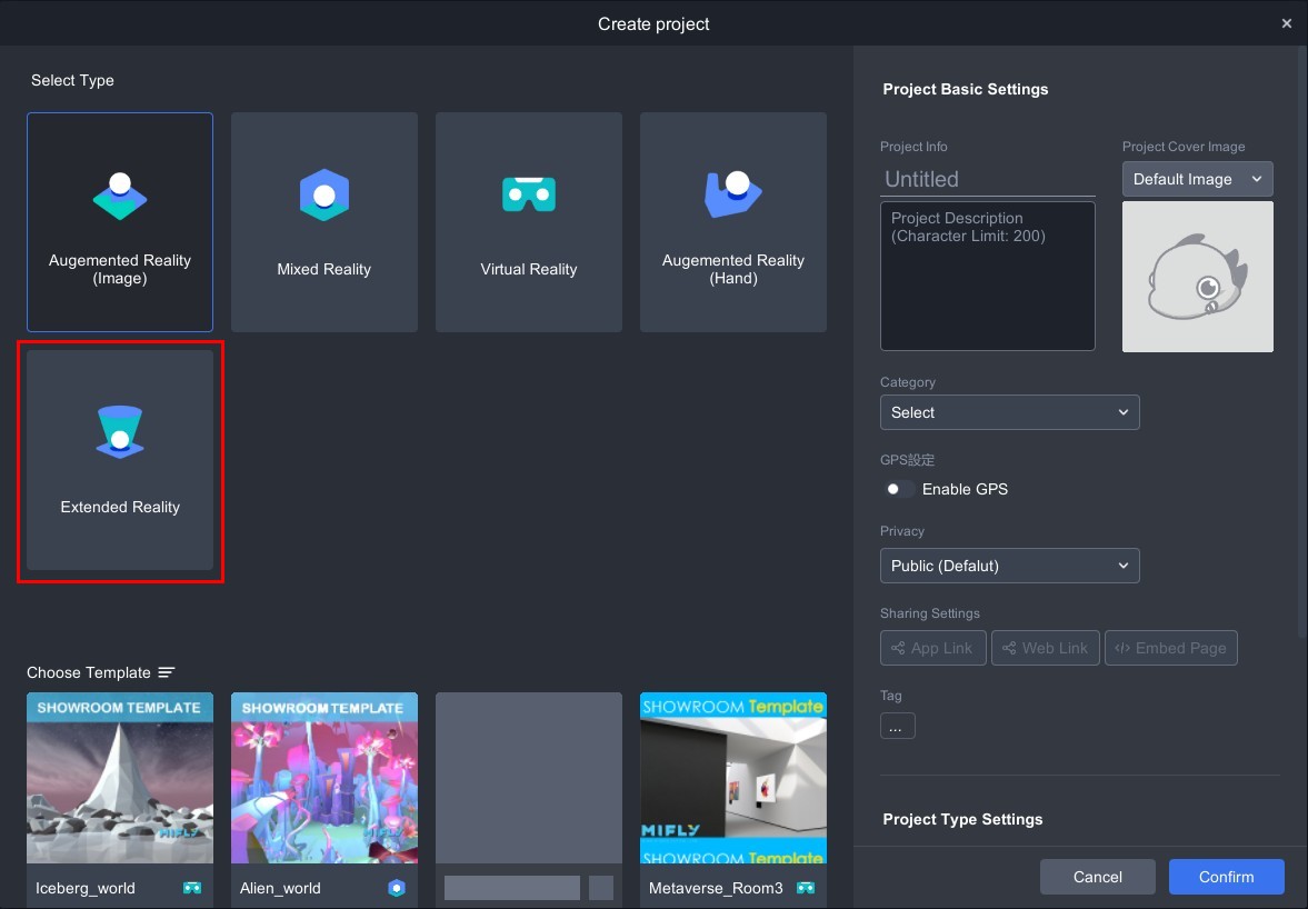 2. In the project creation window, select "Extended Reality" under the type section. Refer to the tutorial for "Complete Basic Project Settings" on the right side.