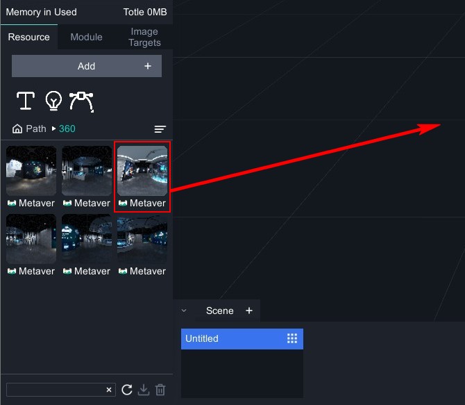 | Method 1: Drag a 360 panoramic image from the asset library into the scene. | Method 2: Click scene objects, and on the right side, select "Virtual Reality" from the drop-down menu. |