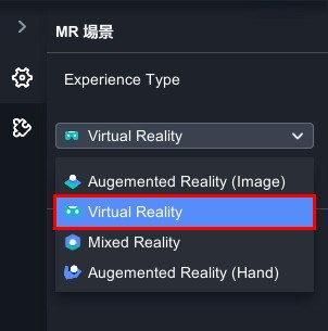 4. The key feature of Extended Reality is the ability to switch between different project types seamlessly. When you want to switch functionalities, click the scene object, and on the right side, select the experience type. You can easily switch to any type you desire!