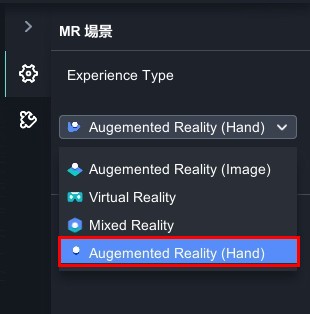 | Method 1: Click scene objects, and on the right side, select "Augmented Reality (Hand)" from the drop-down menu. |