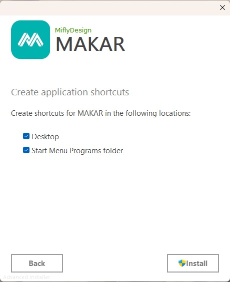 | 3. Check the shortcuts you want, then click "Install". | 4. MAKAR is installing. |