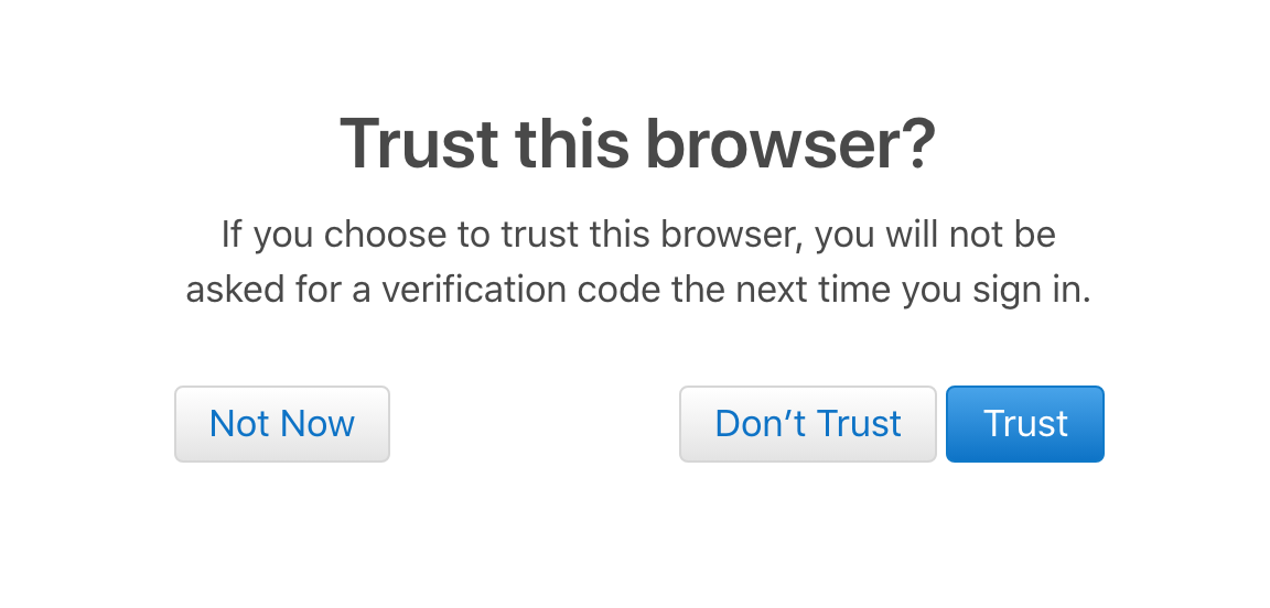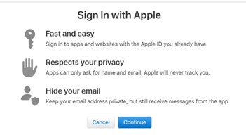 3. A "Trust This Browser?" prompt will appear. Click "Trust." 4. "Sign in with Apple" will appear. Click "Continue."