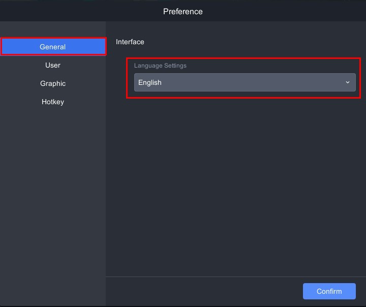 2. In the preferences window, click "General" and select your desired language from the "Language Settings" dropdown menu. Click "Confirm" to successfully change the language.