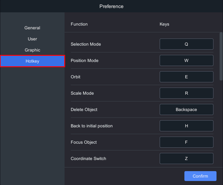 2. In the preference window that appears, click "Hotkey" to set shortcuts for various functions.