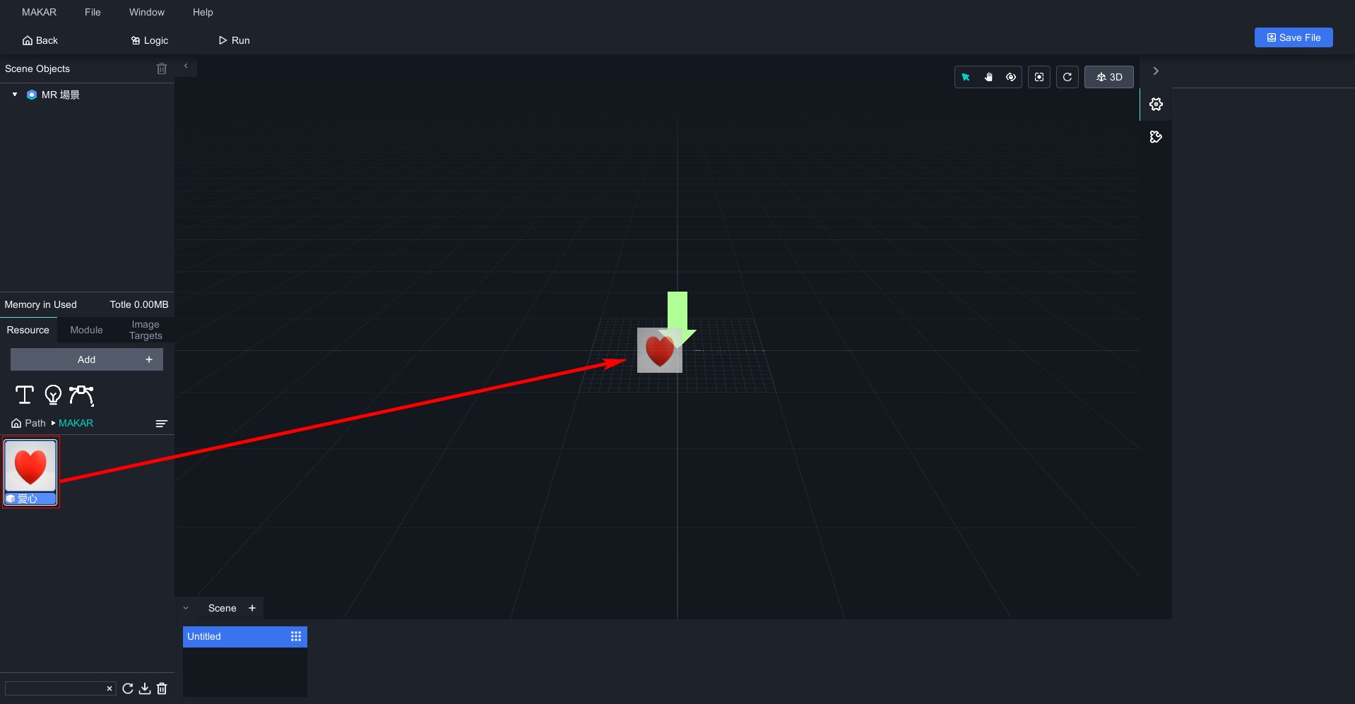 ​If you have uploaded your own models or downloaded models from the resources, you can drag and drop them directly from the resources into your scene, and then you can start creating!