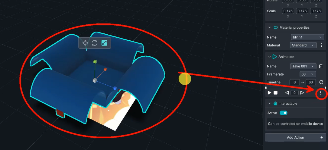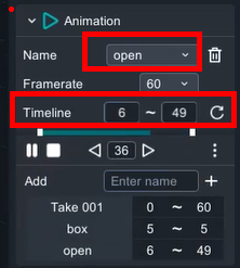 First, you need to separate the animation of the giftbox into two states: the static state (box) and the open state (open). Click the three dots in the bottom right corner of the animation feature for giftbox to create a new animation.