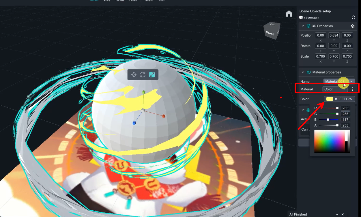 The rasengan in the material can be used to decorate as a magic ball, but this model does not have any material (color) by default. Therefore, through MAKAR's built-in functions, the model can be colored.