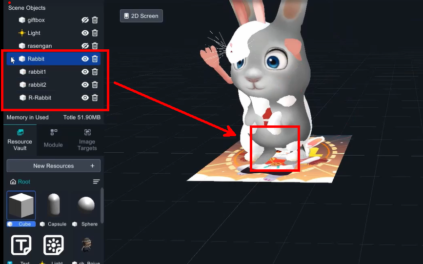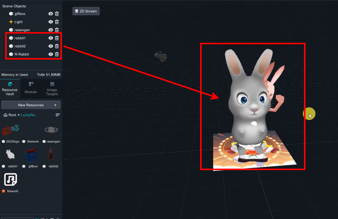 We will be using three rabbits for this project. Place each rabbit in the center of the scene and adjust their sizes to be consistent.
