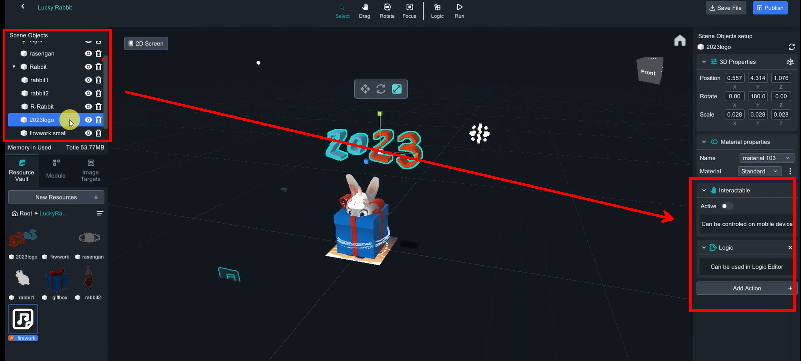 Abstract: In this tutorial, I will explain how to create this AR envelope advanced version, and how to use Blockly to create interactive AR project. Introduction: There are increasingly more tools available for quickly and easily creating AR projects. As people become more familiar with this technology, they will want to try out more possibilities, whether in terms of interactivity or functionality. The MAKAR editor has added "logic functions" in recent years, using programming blocks which are easier for beginners to learn compared to traditional text-based programming. Beginners will not make errors due to input mistakes or missing specific symbols, which can cause programs to fail. This project builds upon the AR envelope and focuses more on achieving AR effects through logical programming. It will use effects such as "random sampling" and "model fade-in/fade-out". |