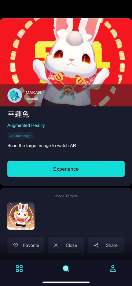 3. Select「幸運兔」project,click「experience」to active and put the camera face forward the poster.