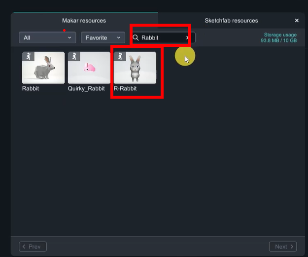To add the material, go to New Resources🡪 Online Resources 🡪 MAKAR Resources, and search for "Rabbit". You may not find the rabbit if you typed “rabbit”.