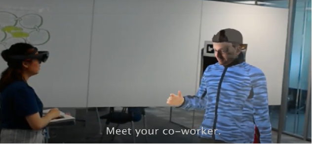 微軟是如何做到呢? 首先,利用一組在辦公室放入可移動的機器人,配合浮空投影技術,讓配戴HoloLens等擴增實境頭戴裝置的人,可以看到其他也從設備連接上線的人,透過全身形式「出現」在辦公室內,開始展開如同正常上班的情境。
