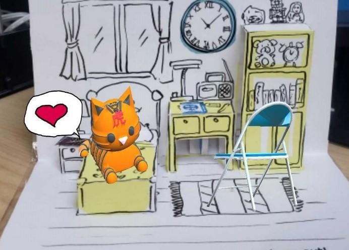 擴增實境除了平面素材的2D觸發效果之外,MAKAR編輯器也支援3D建模素材。《我的第一本AR解謎立體書》便是利用紙本實體的立體書,結合3D模型素材的AR擴增實境去量身設計的解謎遊戲。