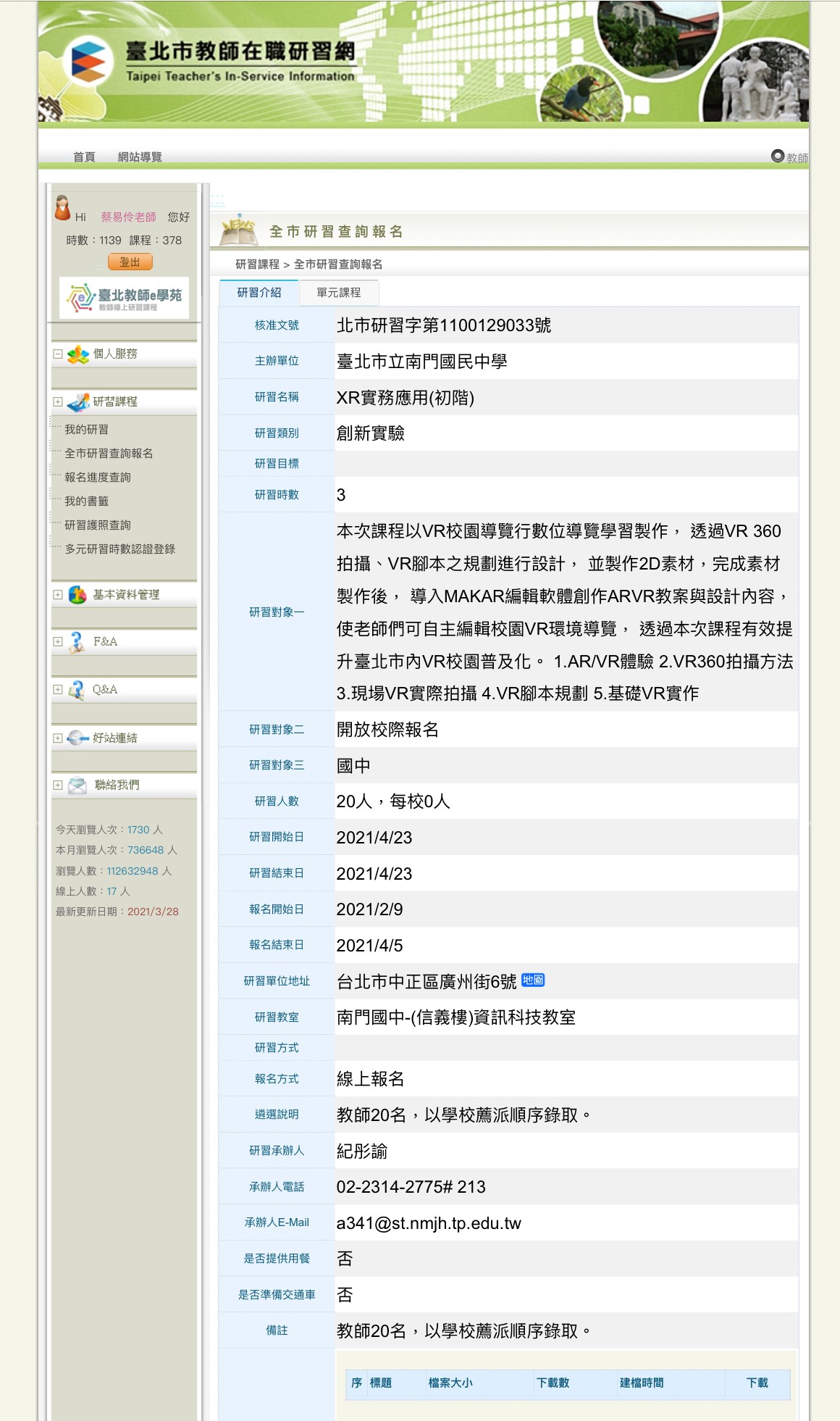 【XR實務應用(初階)課程】核准文號:北市研習字第1100129033號