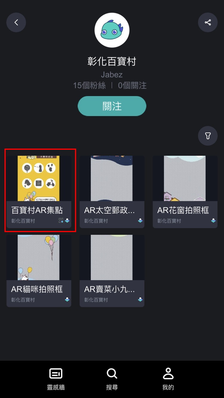 步驟四、現場搜尋園區特色景點和彩繪圖案 (他們就是AR辨識圖唷!),掃描並集點