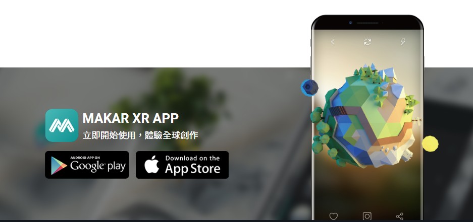 MAKAR XR編輯平台,使用者可透過MAKAR編輯器及MAKAR APP進行XR數位內容創作。MAKAR APP提供多樣化行動載具支援,其中包含:手機、平板、AR眼鏡、VR頭盔及WebAR/VR體驗。