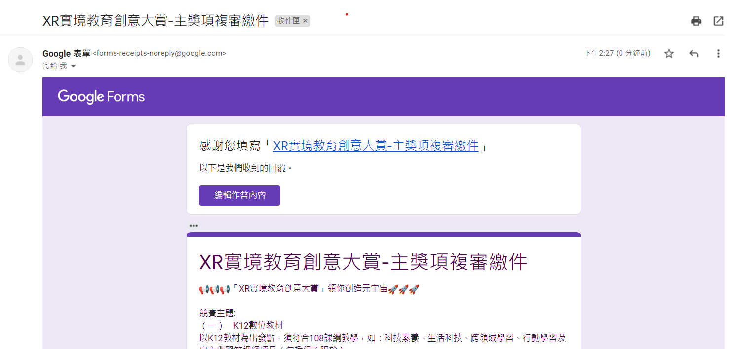 大家昨天繳件後應該有收到一封google表單的提交成功信件(如下圖)