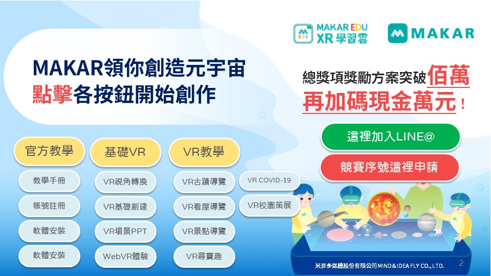 今(111年)臺北市教育局VR競賽,MAKAR AR/VR/MR編輯工具應用項目,總獎項獎勵方案突破佰萬再加碼現金萬元!