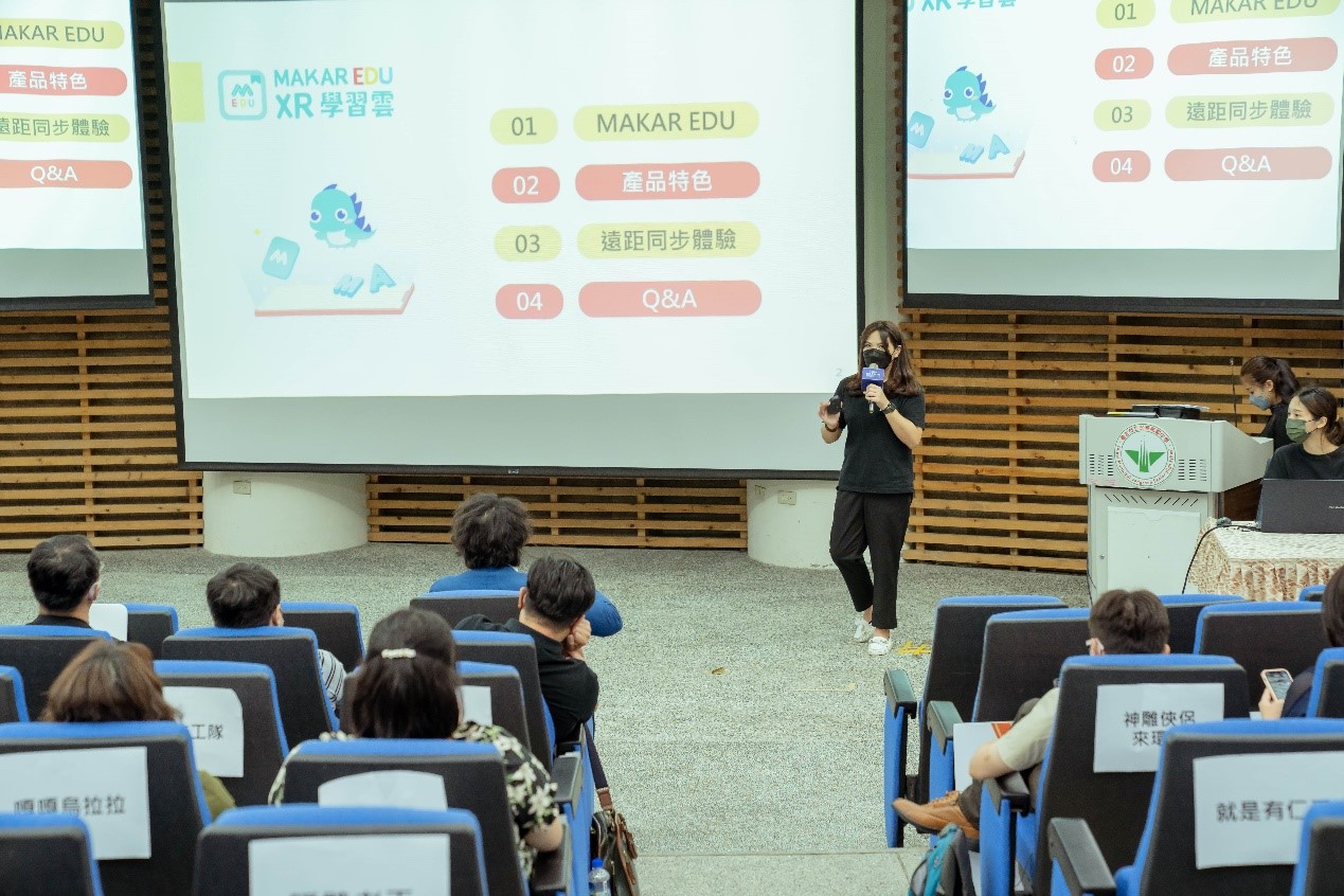 這次「XR實境教育創意大賞」是希望透過競賽提升全國師生AR VR MR數位化能力並走向元宇宙的世界,在頒獎典禮結的尾聲,由米菲產品經理蔡雅雯帶來賓一起體驗元宇宙平台「MAKAR EDU學習雲」,提供多人即時連線及廣播功能的遠距中控平台,建立導覽並加入,可在過程中獲得學習歷程數據,並結合XR創作平台 「MAKAR XR Platform」進行數位內容創作,虛實情境的學習,全方位融入元宇宙世界。