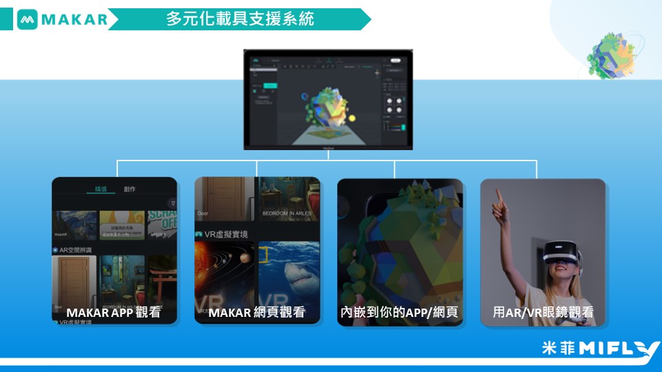 在教育領域中,元宇宙可以實踐任何虛擬的想像世界,透過虛擬物件的重構,讓想像的世界可以在虛擬空間中呈現。近年來米菲多媒體專注於AR/VR/MR的元宇做創作軟體開發,於2017年推出MAKAR AR編輯器、2018年推出MAKAR VR編輯功能及MR編輯功能,2021年推出邏輯式積木編程(Blockly)期望落實更完整的程式教育。 MAKAR領你創造元宇宙於2022年舉辦XR實境教育創意大賞,吸引全國270個隊伍參加共700多人參與,讓我們一起來瞭解應用於數位內容與數位創作上的期許與夢想吧!
