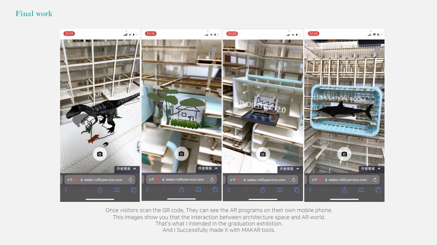 他開始找尋建築與元宇宙之間的關係,將MAKAR應用在他的建築模型上,以AR來呈現另一個世界的樣貌,