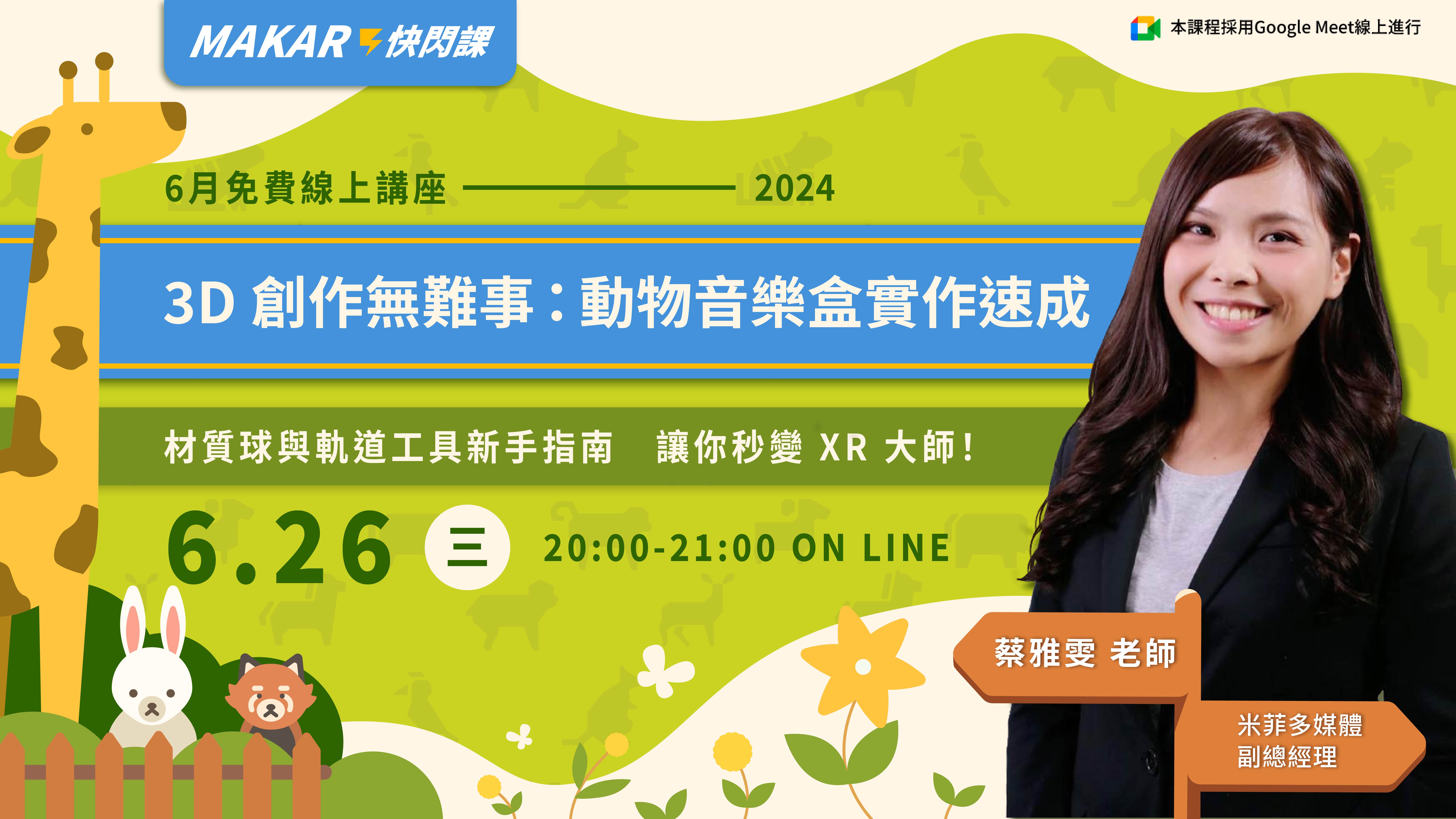 本月快閃主題來拯救你啦!這次我們以木柵動物園為靈感,特別推出充滿童趣的「動物園音樂盒」!本次課程中,我們將重點介紹 MAKAR 的最新功能——材質球調整與軌道工具,讓 3D 創作變得前所未有的簡單。