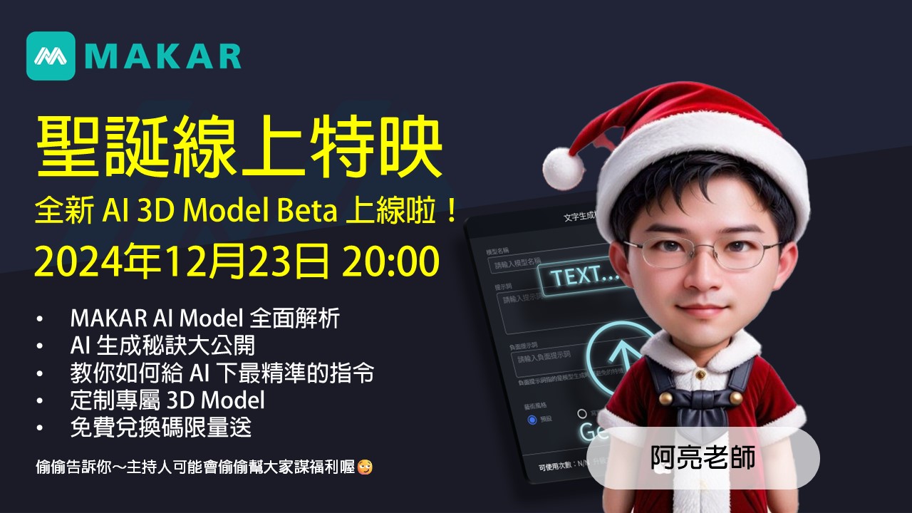 113年12月23日聖誕線上快閃特映,邀您線上快閃AI 3D Model創作小技巧!