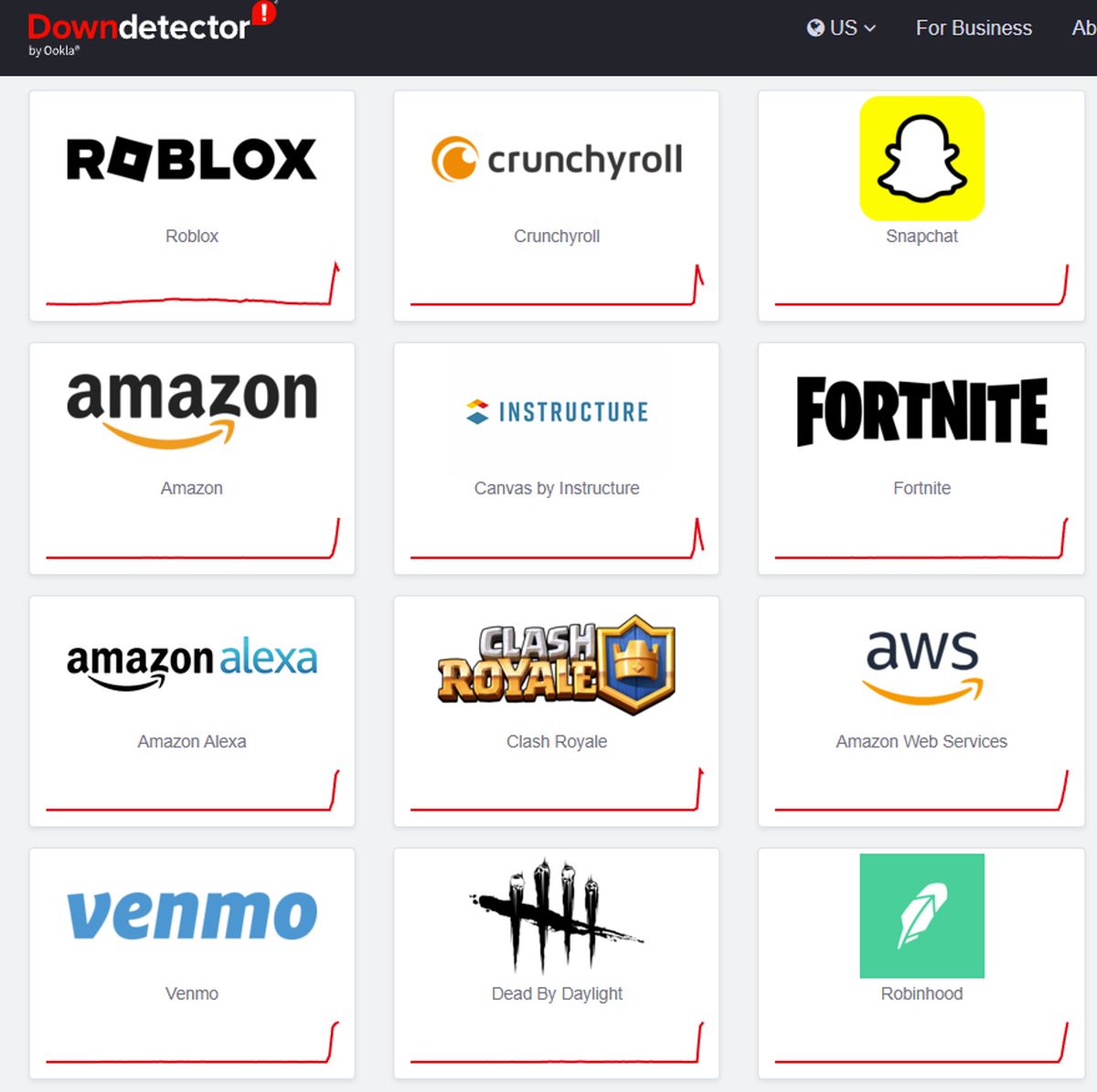 關於2025年10月20日全球亞馬遜公告提出,亞馬遜網路服務 (AWS) 發生重大故障,導致大規模網路中斷,數十款熱門應用程式、遊戲和網站癱瘓,其中包括 Snapchat、Roblox、Fortnite、Duolingo 和 Ring。用戶於英國時間上午 8 點左右(太平洋時間午夜)開始報告問題,追蹤網站 Downdetector 顯示,依賴亞馬遜雲端基礎設施的服務同時出現大量中斷報告。此事仍在發展中,亞馬遜目前正在努力解決該問題,但尚未公佈全面恢復服務的時間表。