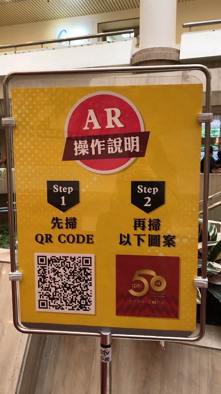 用戶只要透過智慧型手機掃描文宣板上的QRcode,即可進入網頁端(webpage),並自動開啟智慧型手機上的攝像頭,接著在掃瞄中視50周年的活動形象圖案,即可開啟AR特效,就可以開始自拍或是拍攝想要保存留念的人事物唷~