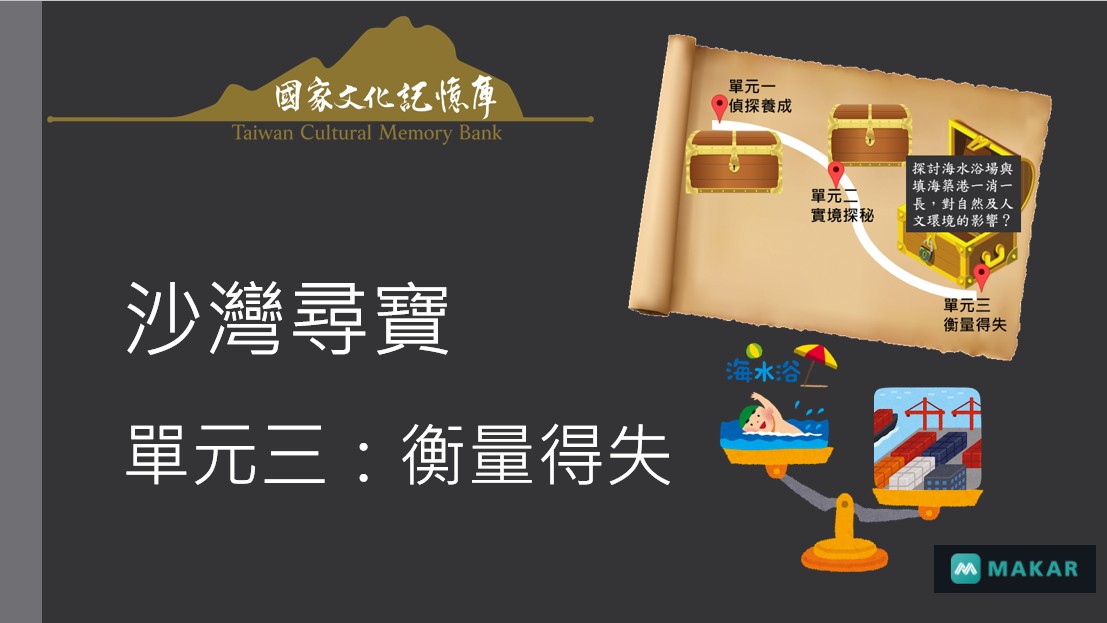 1. 透過實境探秘活動中山連結的紀錄片提及曾帶給耆老們歡樂的大沙灣海水浴場因築港工程而消失,當作切入點,引導學生上網蒐集資料,思考當時築港的需求目的,及帶來的利弊得失?
