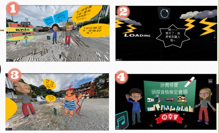 2.利用VR虛擬人物及故事情境,讓學生了解沙灣歷史,進而深化在地臺灣史之學習。