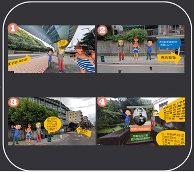 2. 從〈01這是哪裡?〉到〈16尋獲失物〉,共計17關卡,分散在園區內各相關歷史景點。學生使用AR圖像辨識、空間辨識及VR操作技能,並填寫google表單,解鎖每一關卡任務後,可以得到更多沙灣歷史文化的知識及尋寶工具,最後便能幫丟哆囉找回記憶及重要遺失物。
