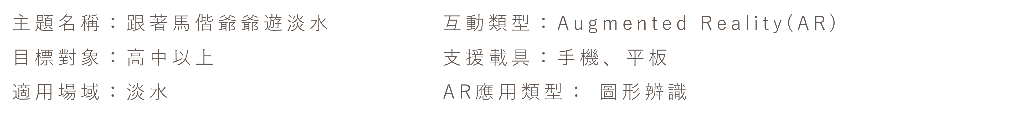 ➣ 劇情大綱:參與者將從探索的過程當中,增加對於在地文化的認識,讓認識淡水歷史景點的過程不再無趣生硬。遊戲將帶領參與者走訪淡水以「清法戰爭」及「馬偕」為主題的九個重要歷史地點,以了解這兩大主線的故事,以及與在地文化的相關性,使遊戲參與者在遊戲的過程當中,提升對於淡水在地文化的認識。