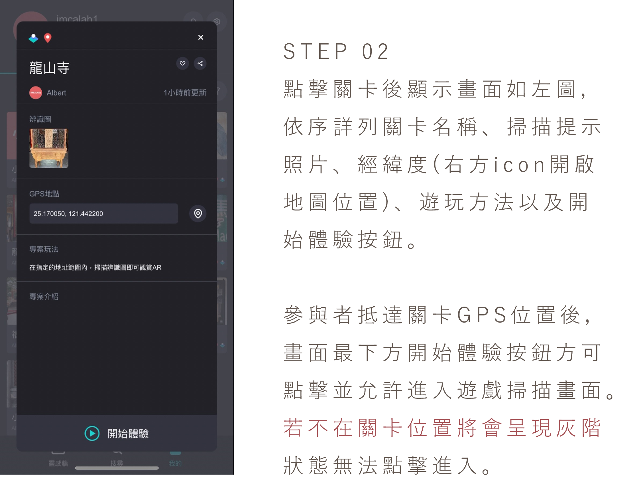 ➣ 本團隊將此遊戲應用於動畫製作的前置課程,讓學習者在創作腳本前進行實地訪查,親身體會在地文化古蹟現今的發展變化。蒐集資料的過程從文獻與網路的平面內容,增加了實境的階段,遊玩過程中除了與古蹟、擴增實境的內容互動外,更增添了與當地居民互動的元素,使學習者獲取在線上蒐集無法取得的在地故事。
