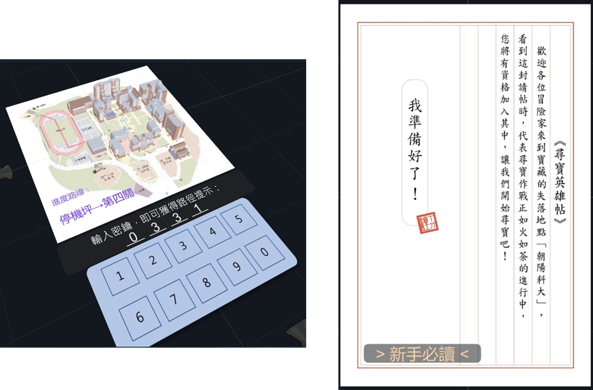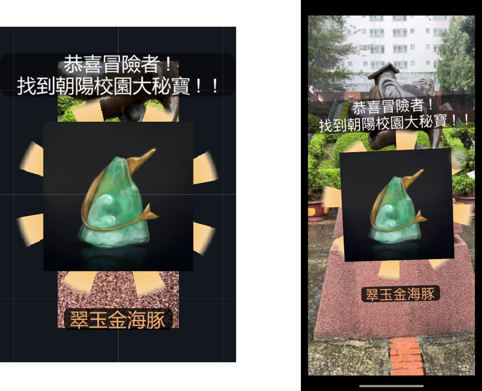 ➣ 我們透過趣味解謎的互動設計,搭配朝陽歷史與校園特色,創作出擴增實境遊戲來讓朝陽新生認識校園。