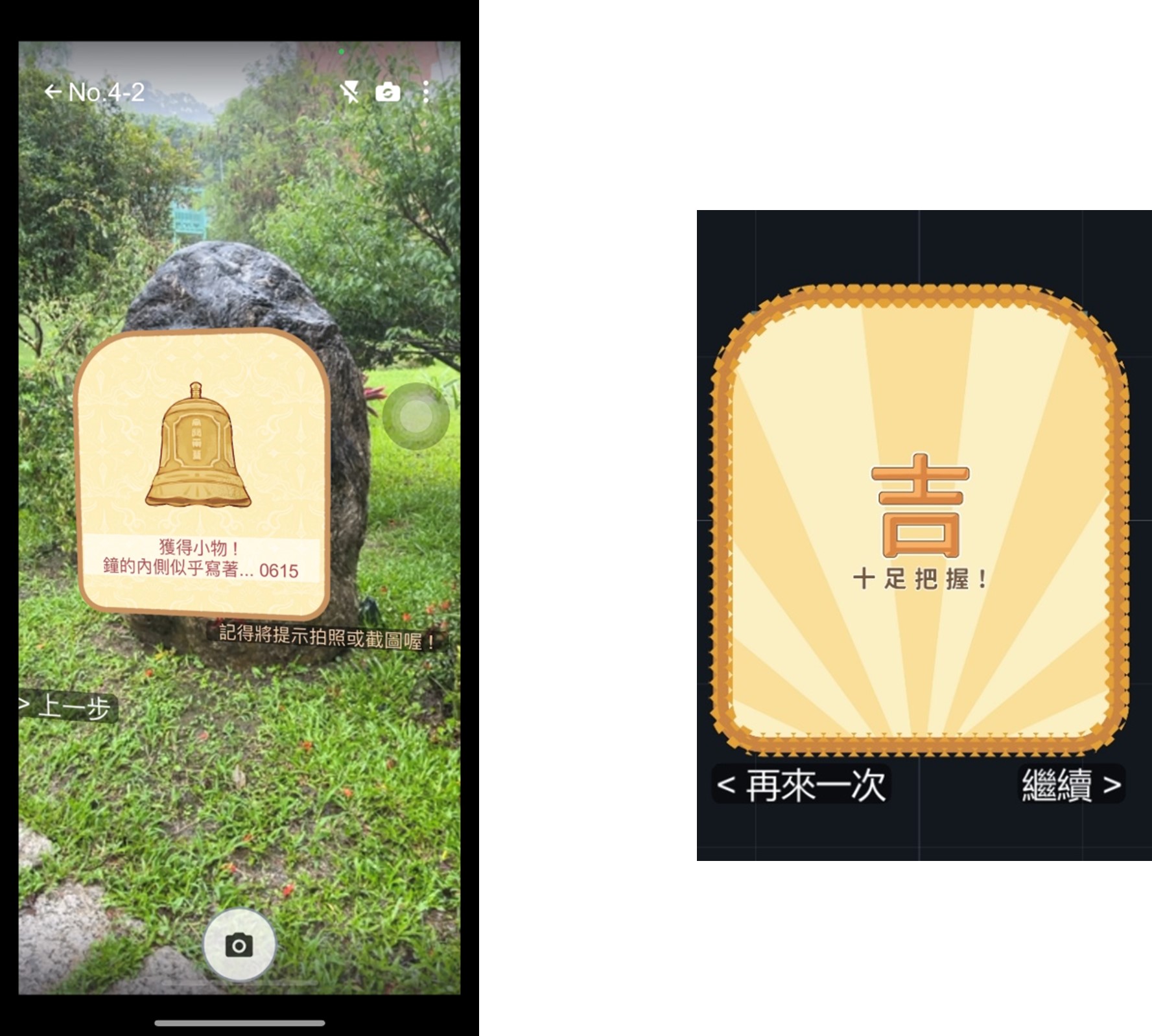 l 第一環節:接續上一關的地圖指引,同學們將根據提示前往古鐘樓,團隊設計了具巧思的學業占卜小遊戲,鼓勵同學精進學業,亦可以令同學們會心一笑,隨後玩家也取得小物地圖。