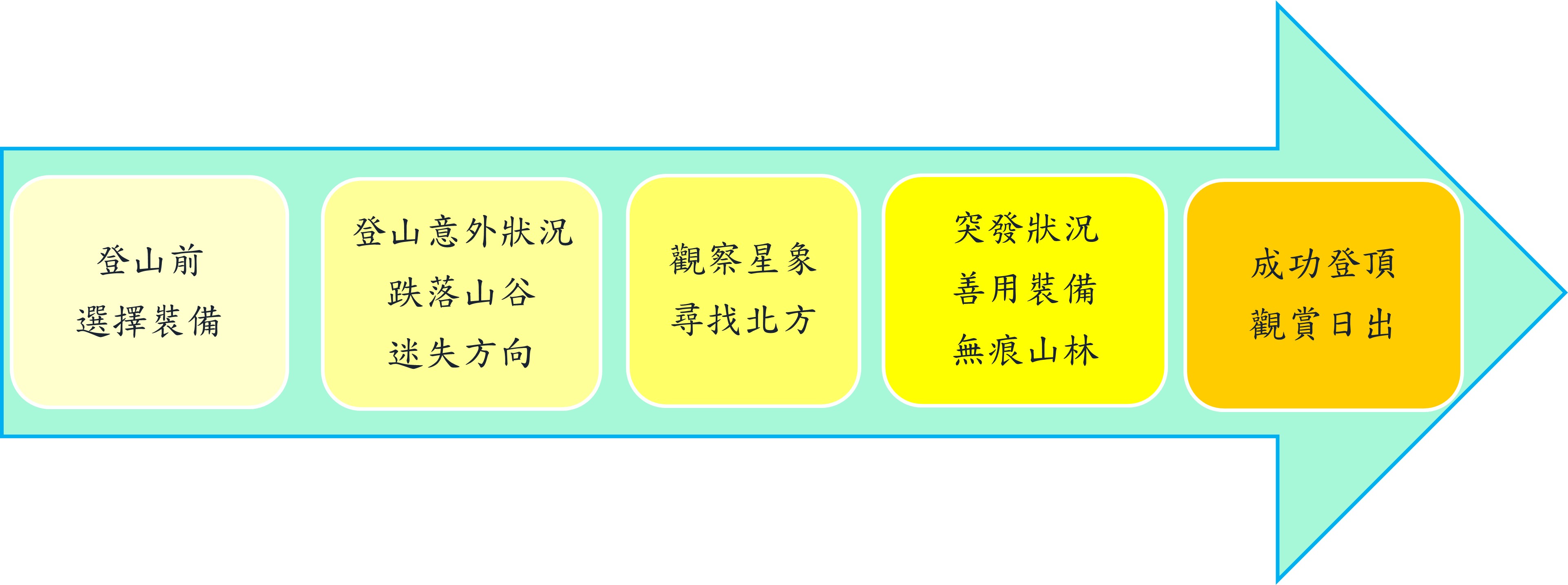 ➣ 作品目標:以觀星尋找方位為主題,搭配無痕山林及聯合國2030永續發展目標第15項的內容,透過遊戲式學習讓參與者了解如何利用特定的星座尋找北極星,進而定位北方,並以闖關方式解決突發狀況,來加深人們登山前準備以及登山時應有作為(無痕山林)的認知。
