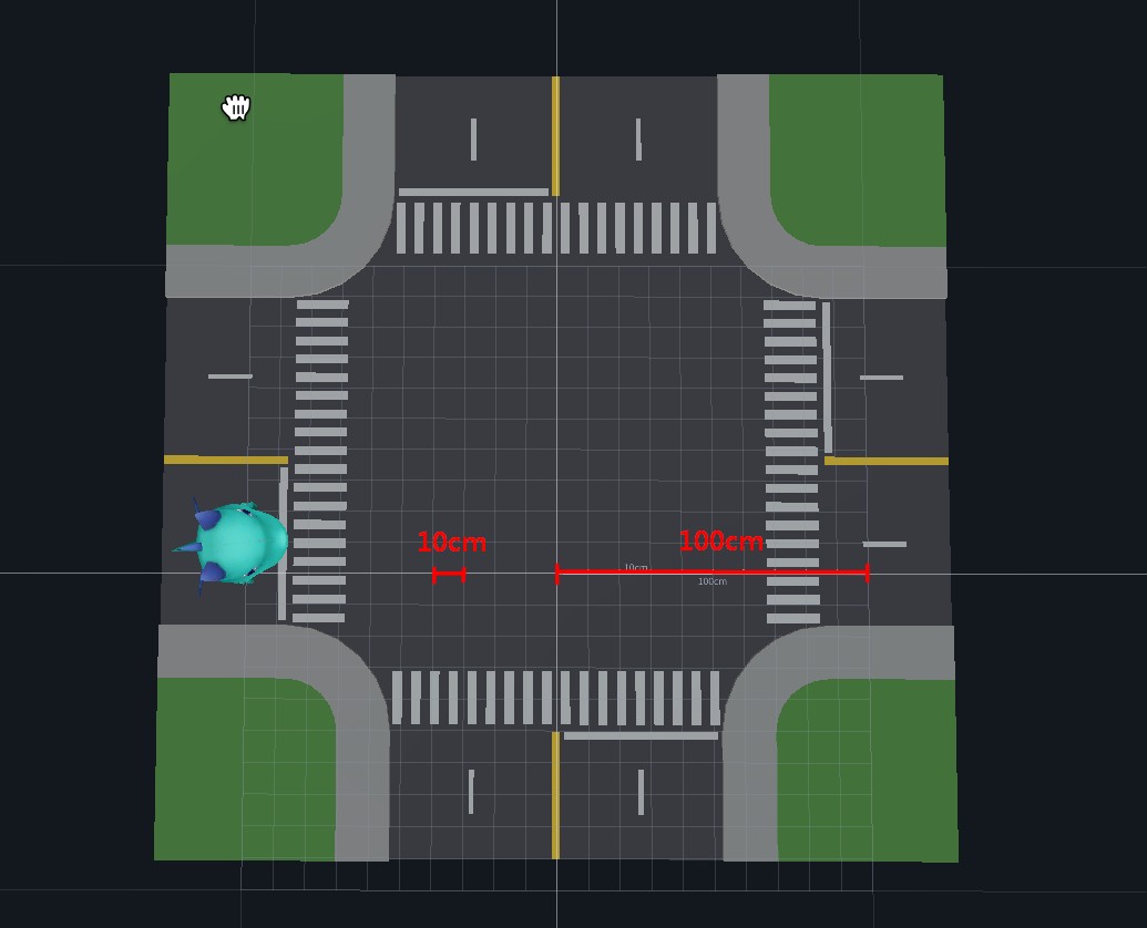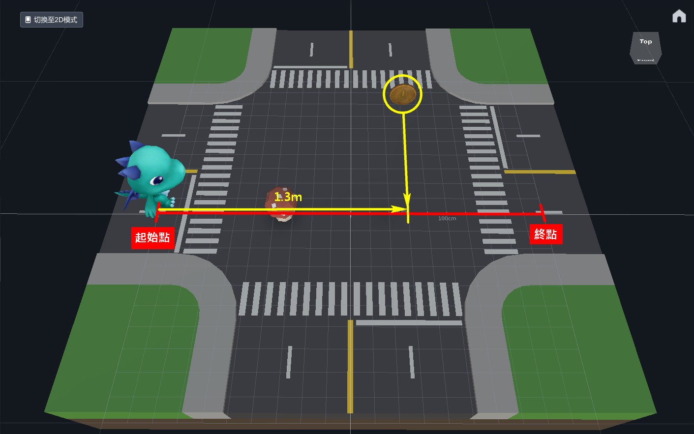 1. 場景中,一小格子為10公分、一大格子為1公尺,依照這個基準預設碼卡龍的步行距離。