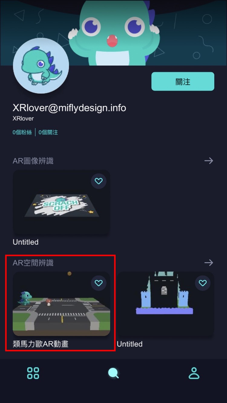 3. 點擊AR空間辨識「類馬力歐AR動畫」專案啟動,點擊「開始體驗」