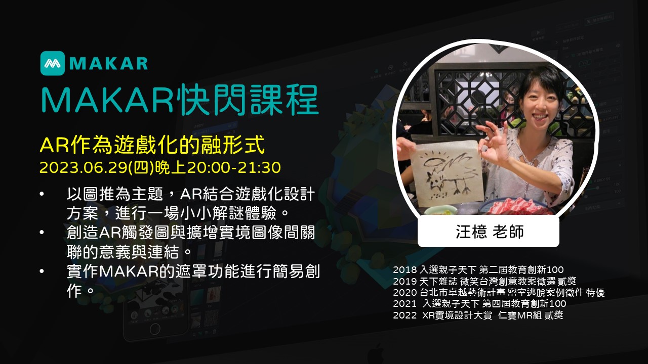 - MAKAR快閃-端午 XR 遊戲製作速成班:AI 助攻實戰延展實境,MAKAR 最新功能全掌握