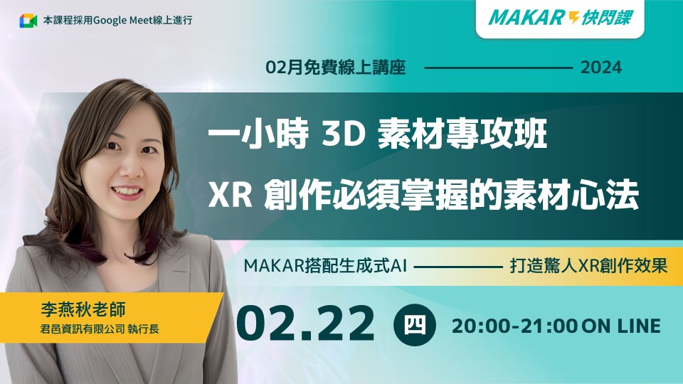 - MAKAR快閃-一小時 3D 素材專攻班,XR 創作必須掌握的素材心法