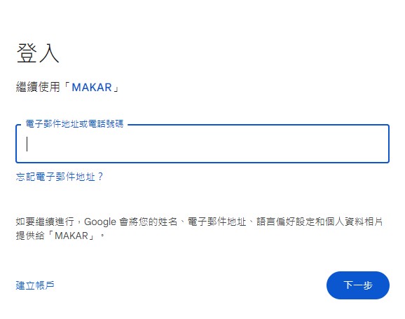 MAKAR 提供三種第三方登入:Google、1Campus、Apple,以下以在 MAKAR Editor 操作第三方登入為例,說明各方登入時面臨的流程。