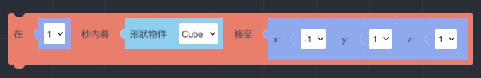 範例:假設 Cube 在 1 秒內移到本身座標的(-1, 1, 1),物件即在秒數內移動到相應的位置。