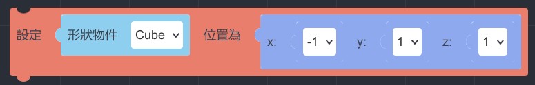 範例:原先的 Cube 位在(0, 0, 0),假設將 Cube 位置設定在本身座標的(-1, 1, 1),觸發時 Cube 即在(-1, 1, 1)的本身座標顯示。